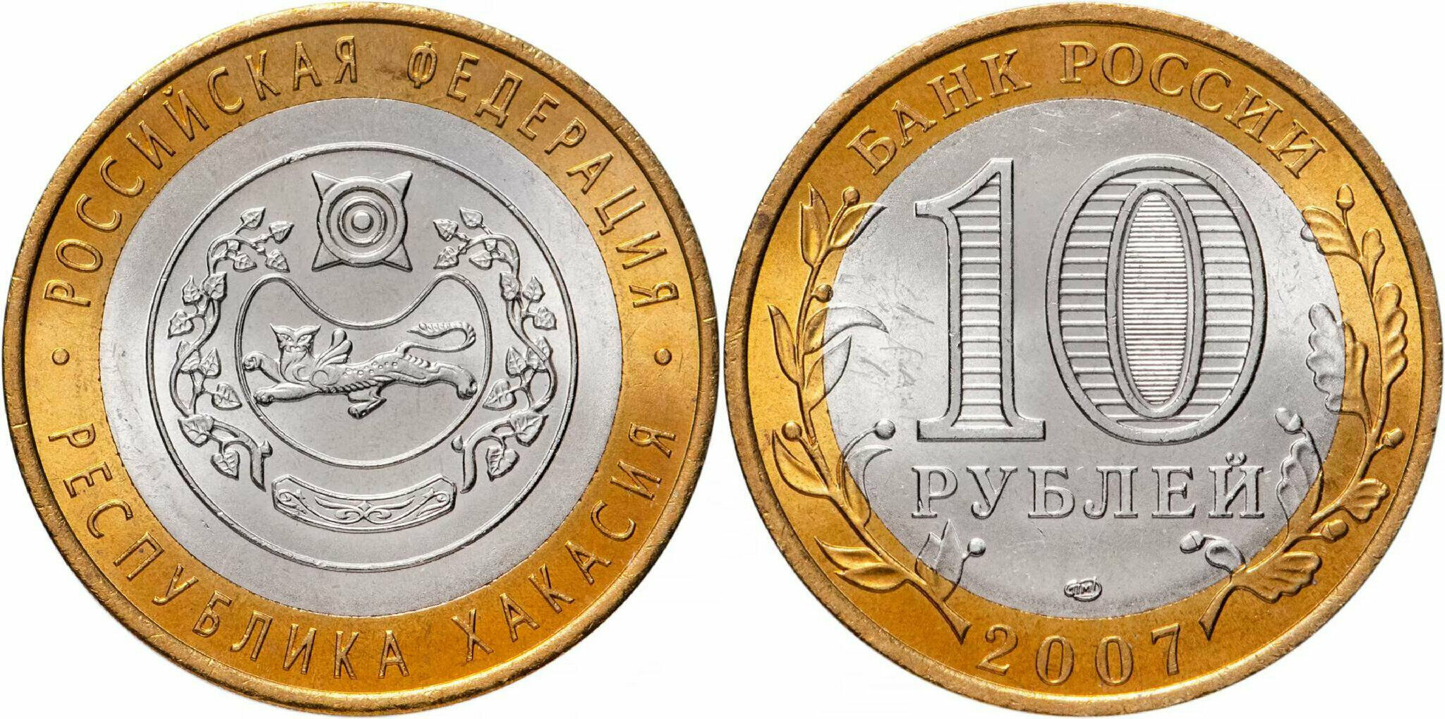 Россия 10 рублей, 2007 Республика Хакасия XF