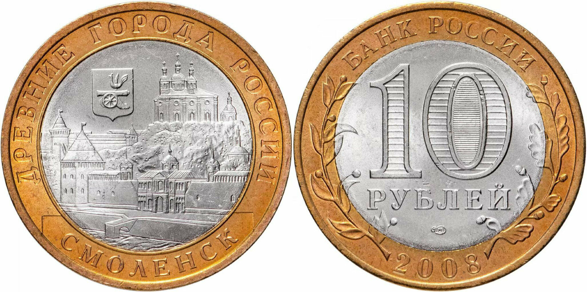 Россия 10 рублей, 2008 Смоленск СПМД XF