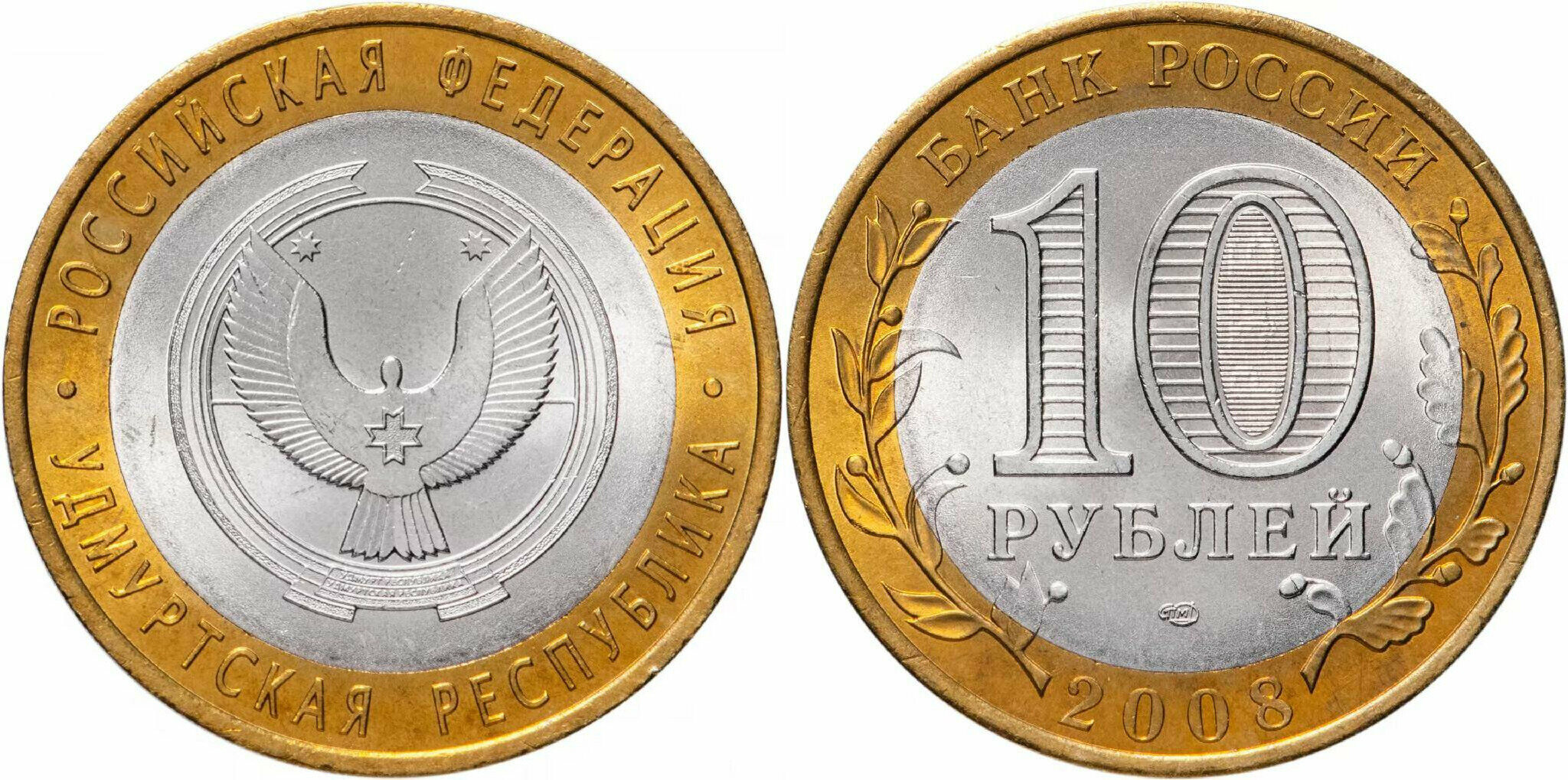 Россия 10 рублей, 2008 Удмуртская Республика СПМД XF