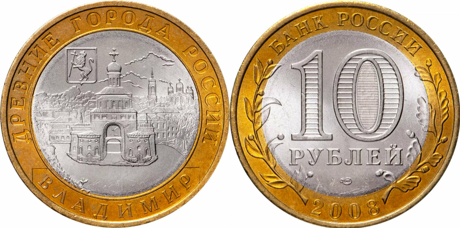 Россия 10 рублей, 2008 Владимир СПМД XF