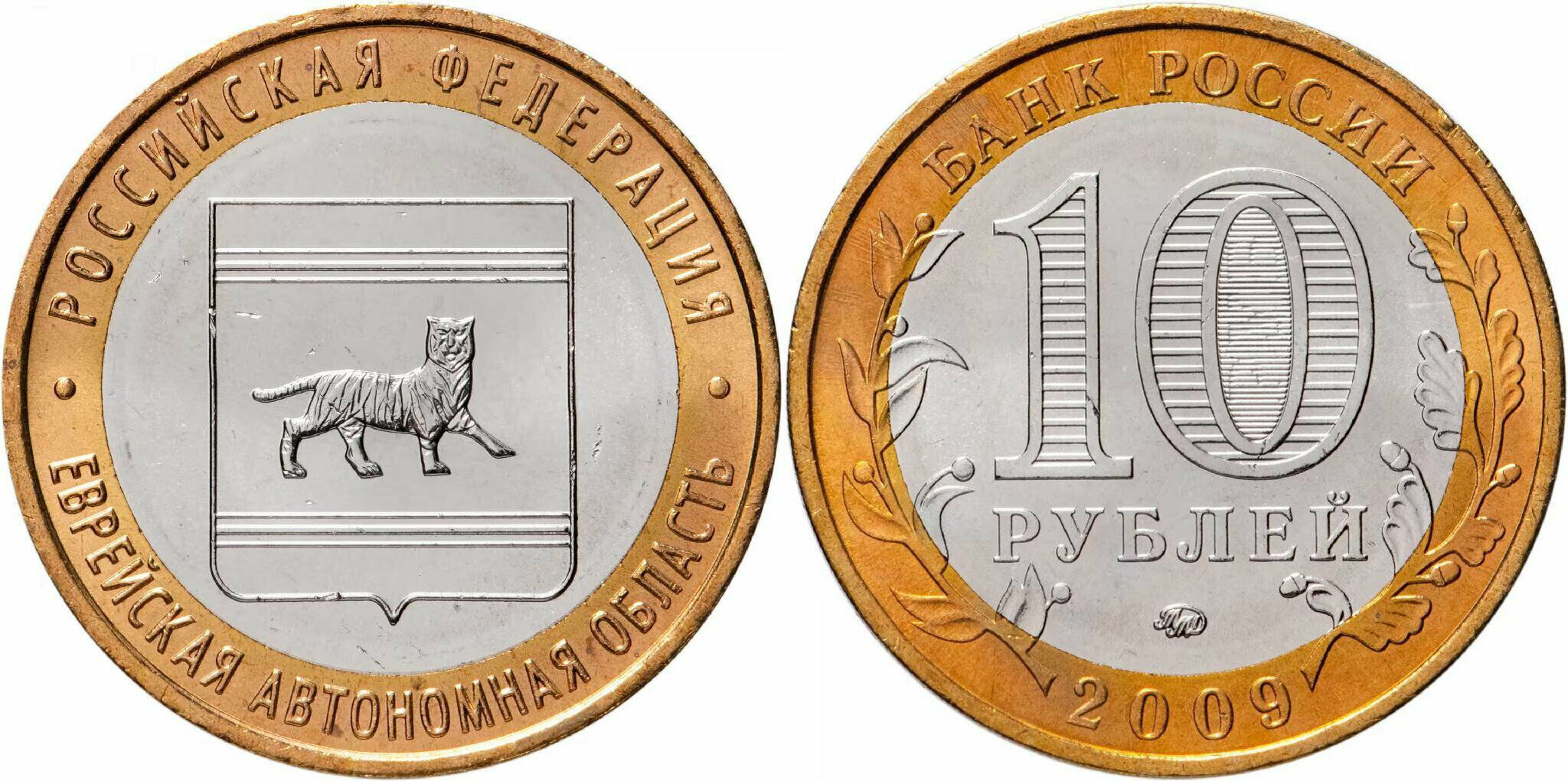 Россия 10 рублей, 2009 Еврейская автономная область ММД XF