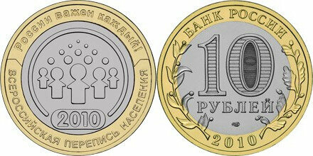 Россия 10 рублей, 2010 Всероссийская перепись населения UNC
