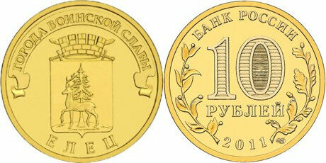 Россия 10 рублей, 2011 Елец UNC
