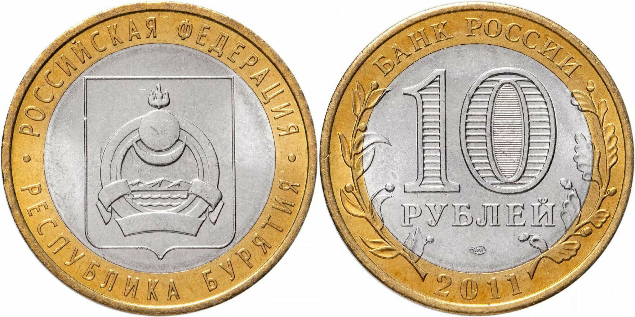 Россия 10 рублей, 2011 Республика Бурятия XF