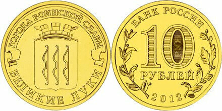 Россия 10 рублей, 2012 Великие Луки UNC
