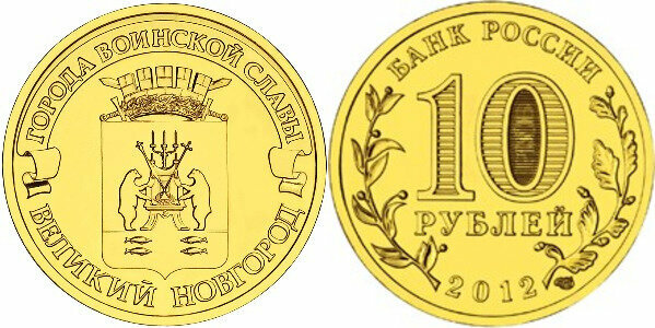 Россия 10 рублей, 2012 Великий Новгород UNC
