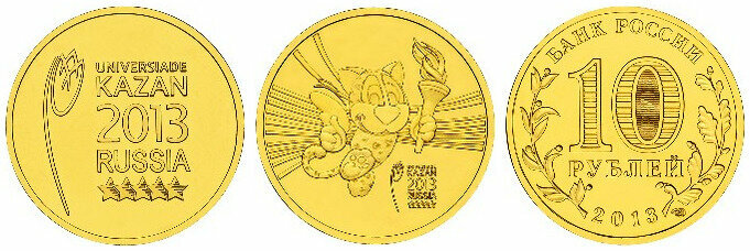 Россия 10 рублей, 2013 Универсиада в Казани 2013 2 монеты