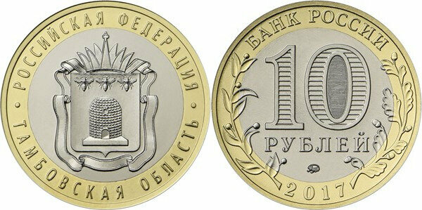 Россия 10 рублей, 2017 Тамбовская область UNC