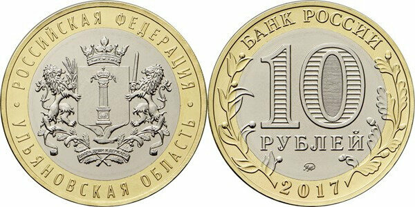 Россия 10 рублей, 2017 Ульяновская область UNC