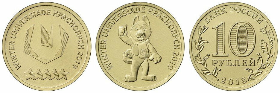 Россия 10 рублей, 2018 Универсиада в Красноярске 2019 - 2 монеты UNC
