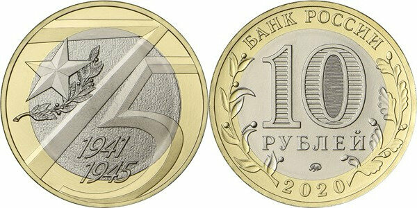 Россия 10 рублей, 2020 75 лет Победе UNC