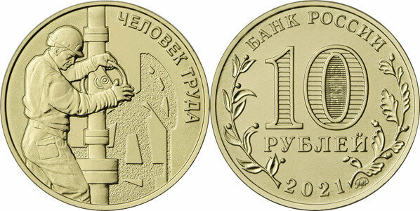 Россия 10 рублей, 2021 Человек труда - Работник нефтегазовой отрасли UNC