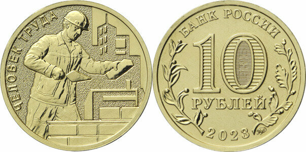 Россия 10 рублей, 2023 Человек труда - Работник строительной сферы
