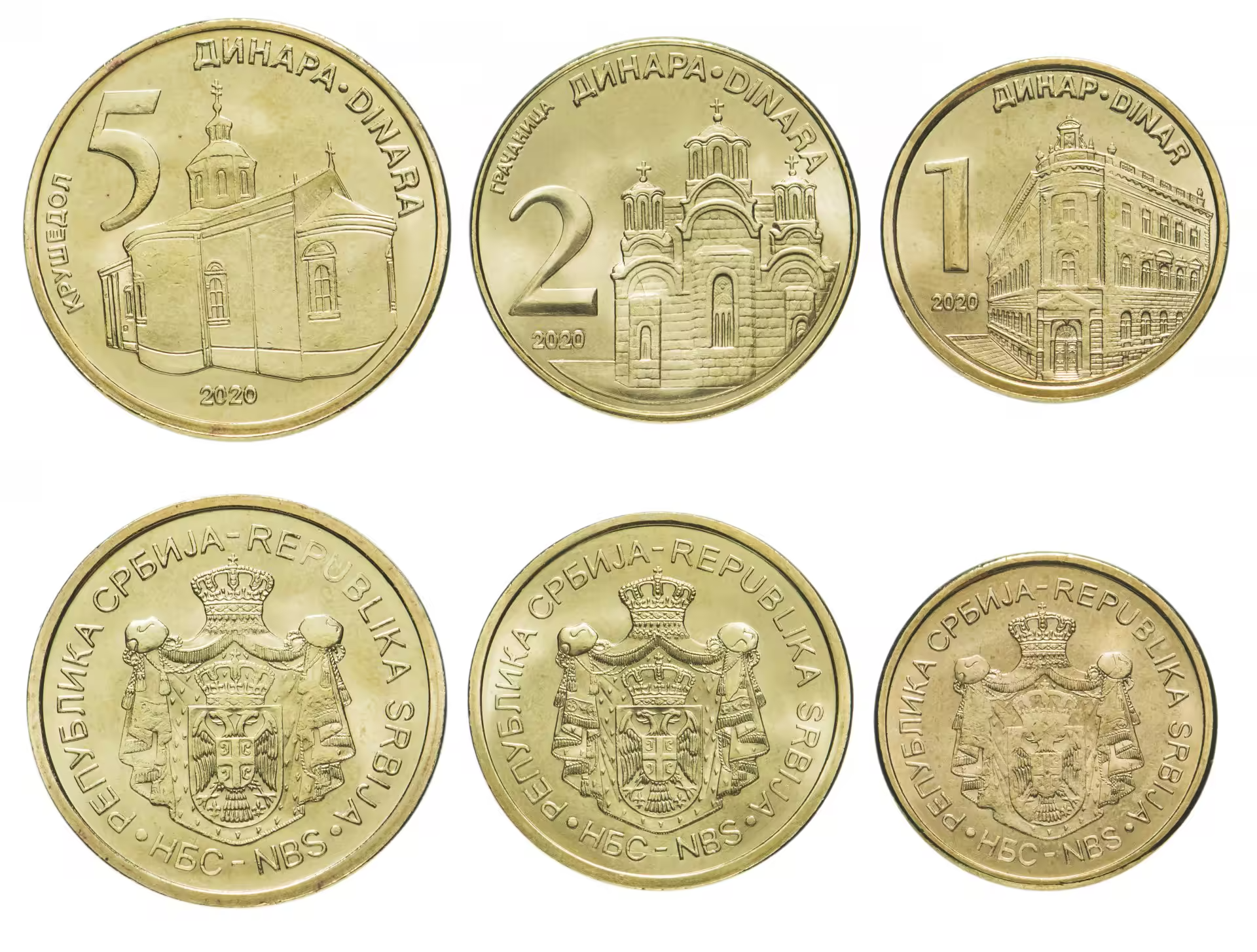 Сербия 1-5 динар 2013-2023 набор 3 монеты UNC