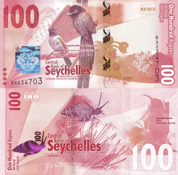 Сейшелы 100 рупий 2016 Альдабрская полосатая улитка UNC