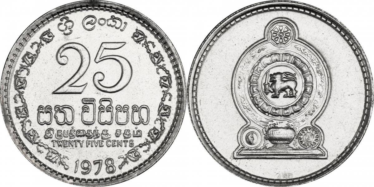 Шри-Ланка 25 центов, 1975 - 1978 Герб XF