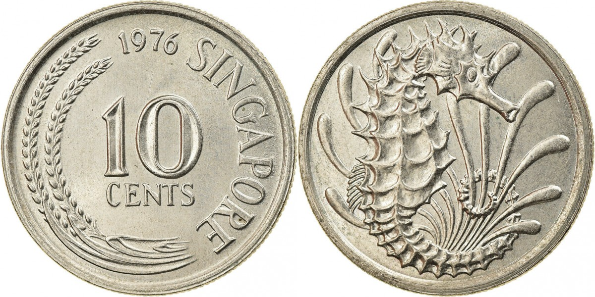 Сингапур 10 центов, 1967 - 1985 Морской конек XF