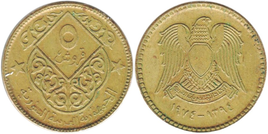 Сирия 5 пиастров, 1974 Герб XF