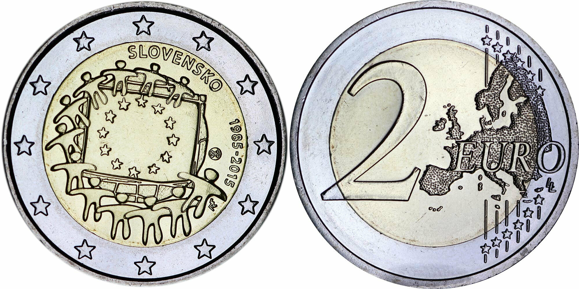 Словакия 2 евро, 2015 30 лет флагу Европейского союза UNC