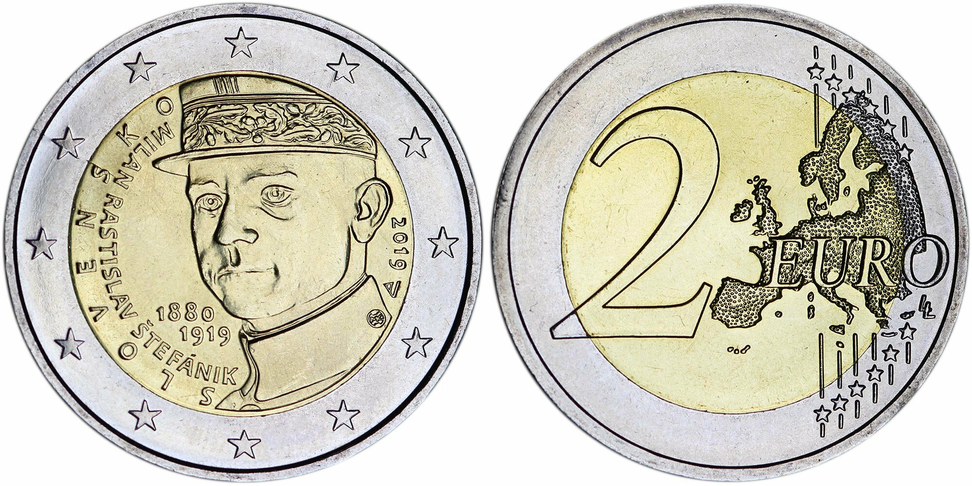 Словакия 2 евро, 2019 100 лет со дня смерти Милана Растислава Штефаника aUNC
