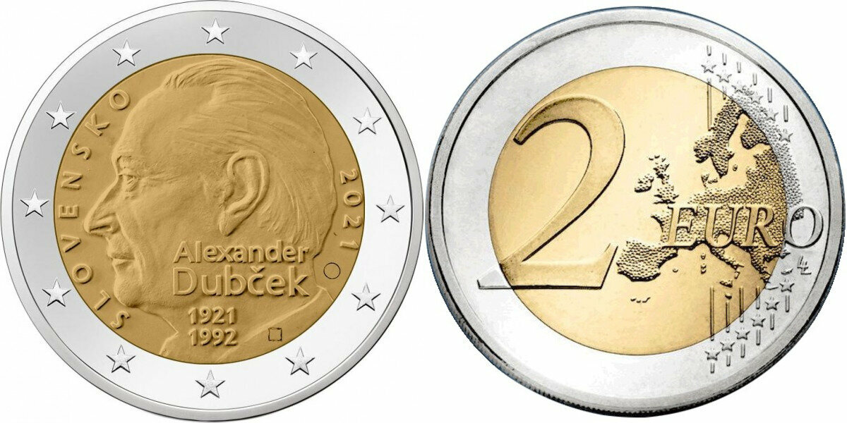 Словакия 2 евро, 2021 100 лет со дня рождения Александра Дубчека aUNC