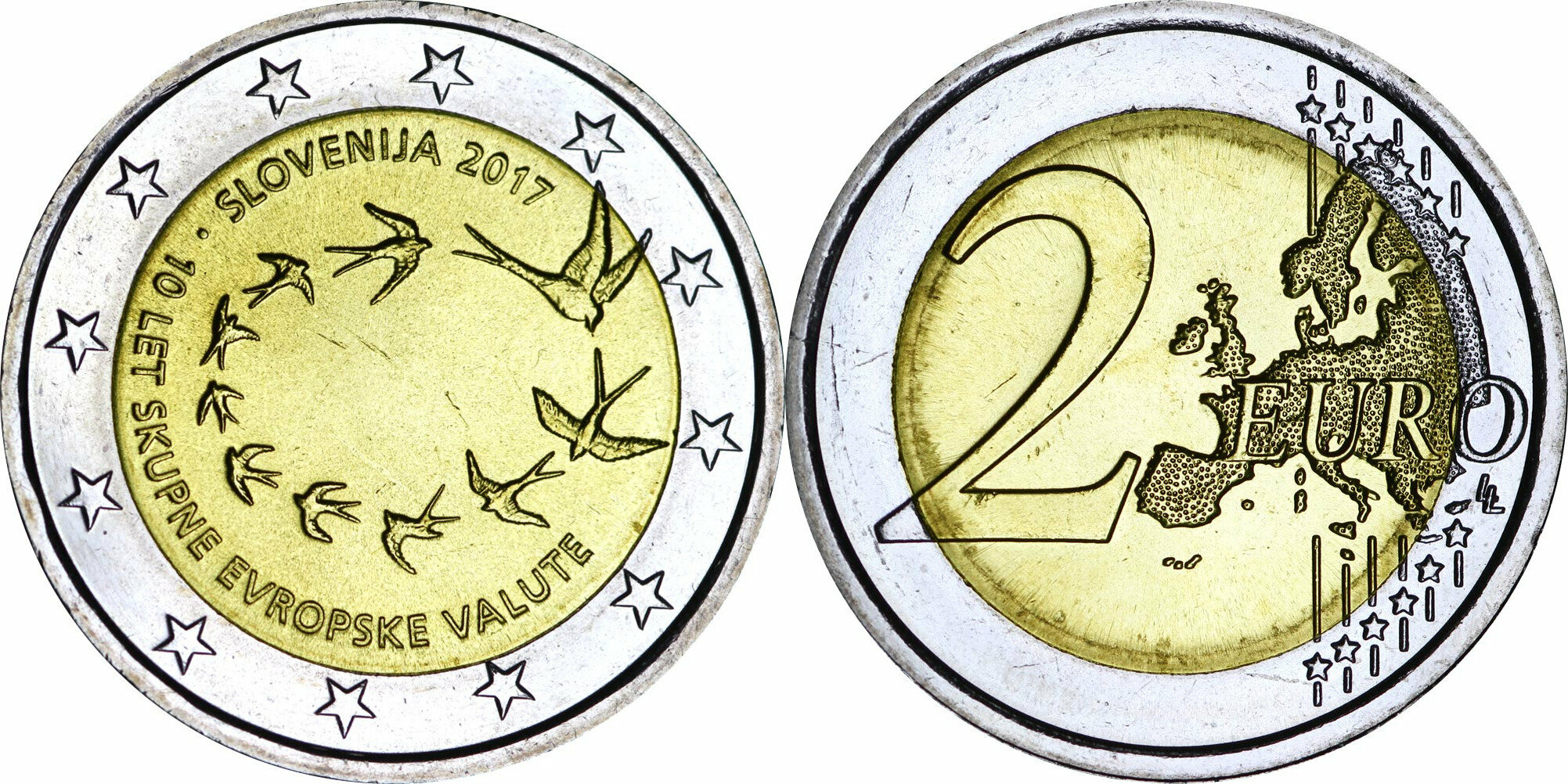Словения 2 евро, 2017 10 лет введению евро в Словении UNC