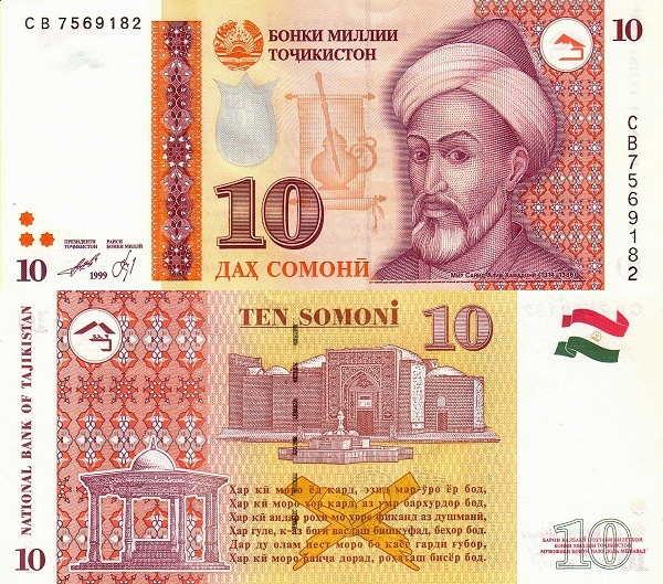 Таджикистан 10 сомони 1999 Мавзолей Мир Саида Али Хамадони в Кулябе UNC