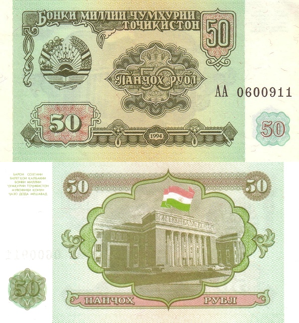 Таджикистан 50 рублей 1994 Здание парламента UNC