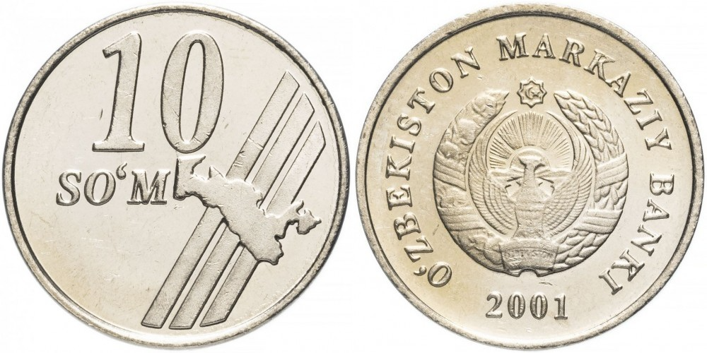 Узбекистан 10 сумов, 2001 Герб XF