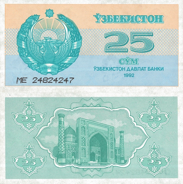 Узбекистан 25 сум 1992 Медресе на площади Реджистан UNC