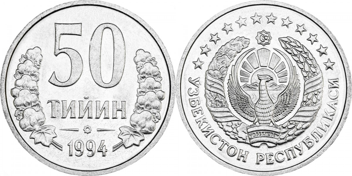 Узбекистан 50 тийин, 1994 Без кольца из точек XF