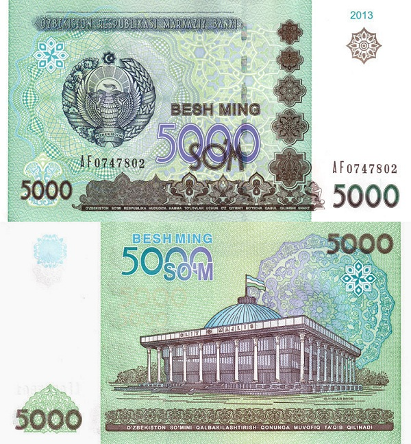 Узбекистан 5000 сум 2013 Национальное собрание UNC