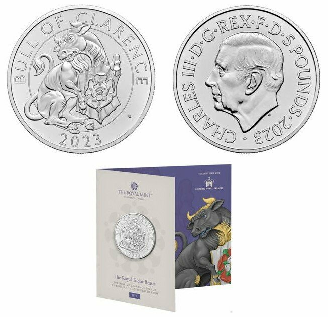 Великобритания 5 фунтов, 2023 Звери Тюдоров - Бык Кларенса
