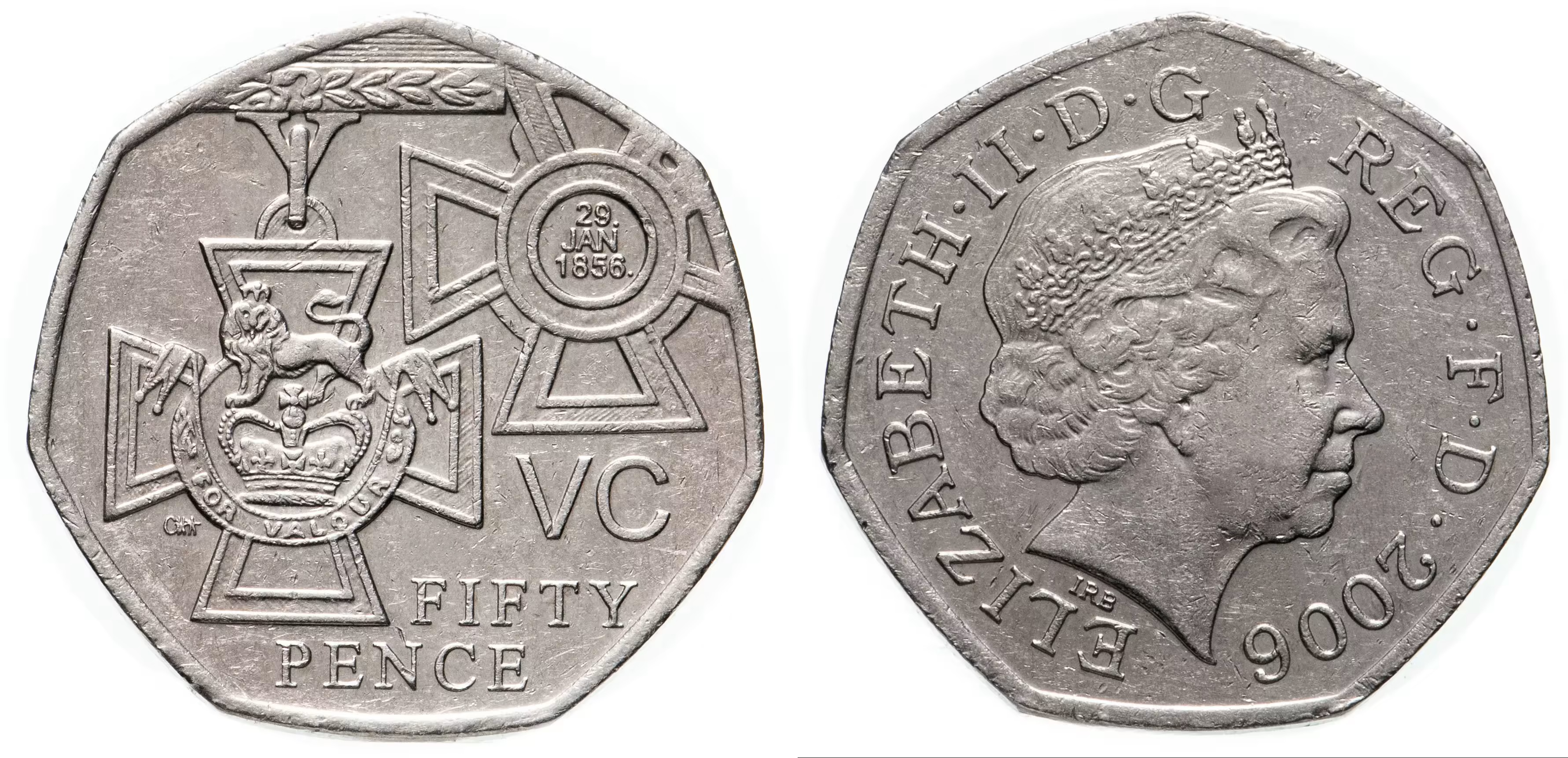 Приобретите памятную монету «Креста Виктории» Великобритании номиналом 50 пенсов 2006 года! Отличное дополнение к вашей нумизматической коллекции или оригинальный подарок латунная монета в отличной сохранности Very Fine (VF). Размером 22,5 мм, весом 9,5 грамм — качество изготовления впечатляет! Уникальная возможность прикоснуться к британской истории по доступной цене!