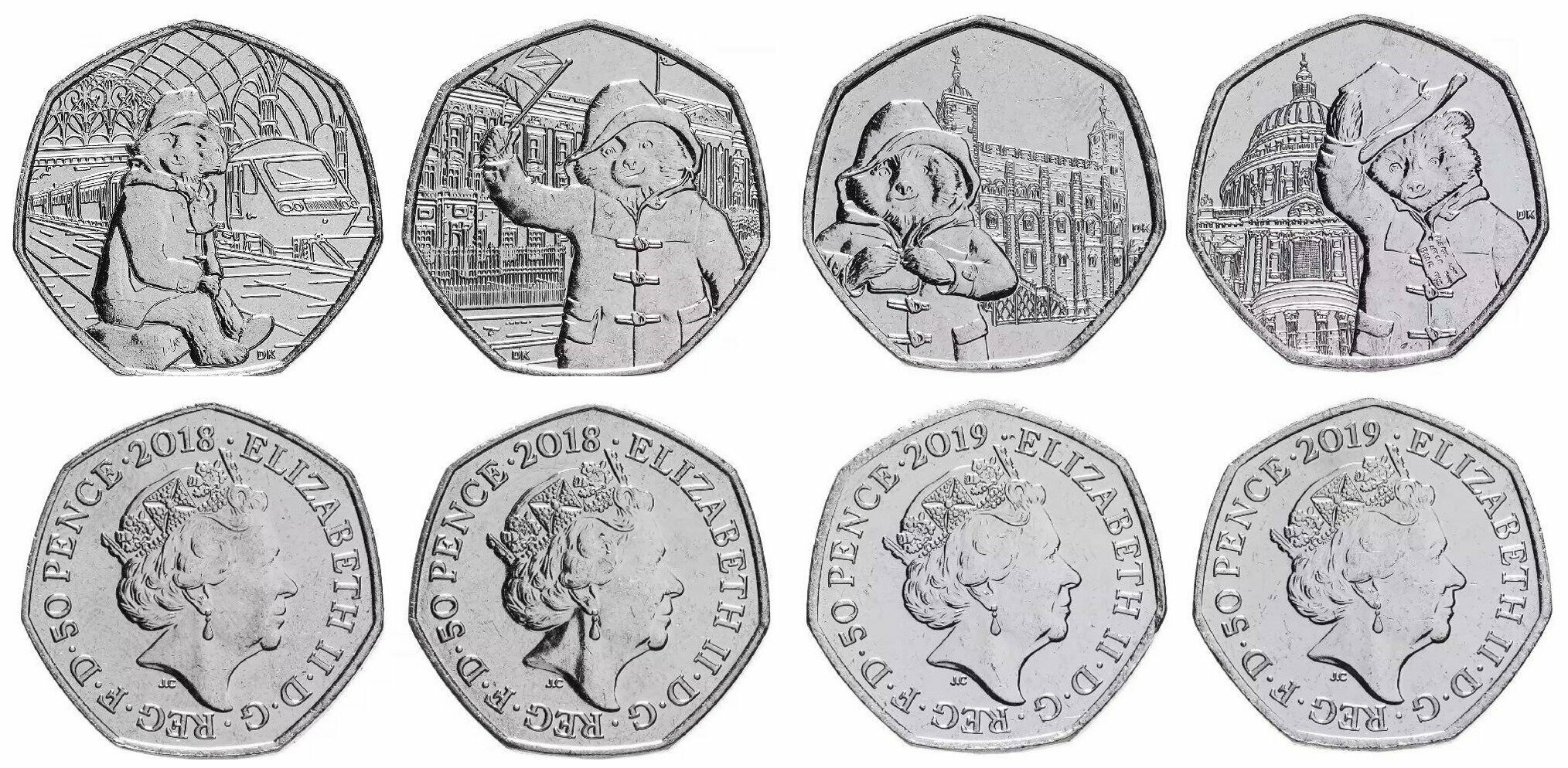 Великобритания 50 пенсов, 2018 - 2019 Медведь Паддингтон - набор 4 монеты UNC