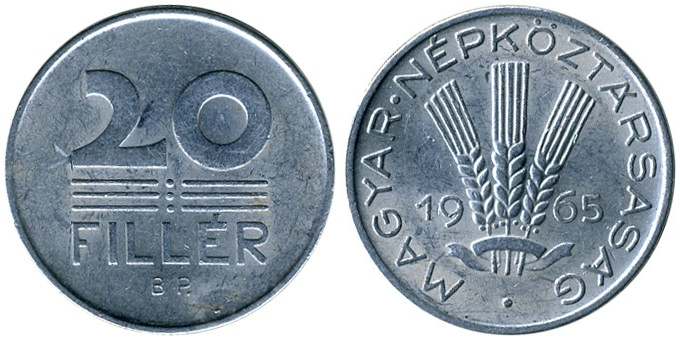 Венгрия 20 филлеров, 1953 - 1966 Колосья XF